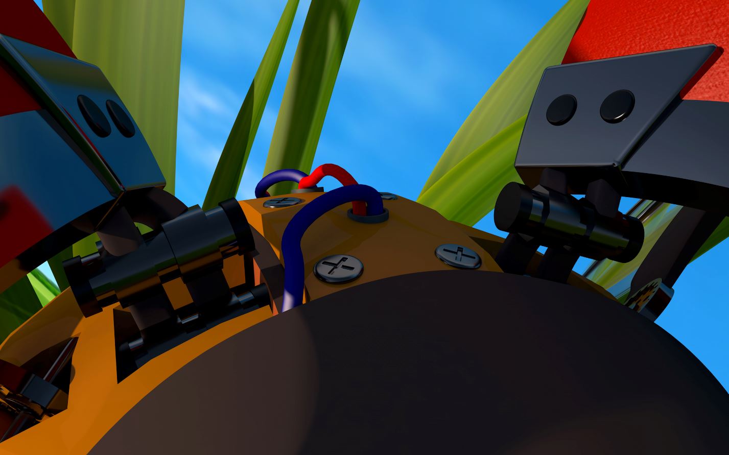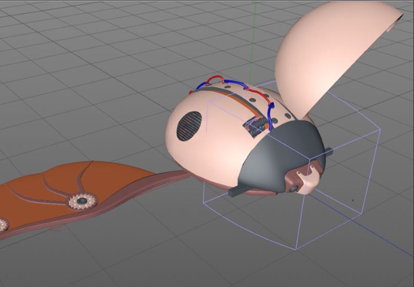 The body of the ladybug can be compared to a computer, where all the wires, motherboards, and CPU’s are hidden inside the yellow plastic body. The wings are connected to the body using gear mechanisms, which rotate when the ladybug is flying. It also has gears inside the wings, which allows them to be folded when the ladybug is at rest. Fianlly, the elytras, which are organic are connected to the body using a clamping system.